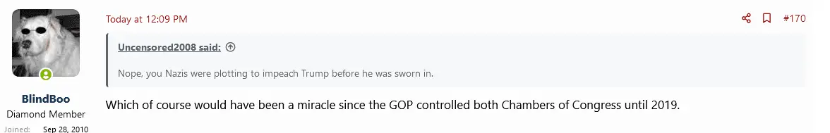 Irrelevant to the fact that...Before the Trumpybear took office the Democrats knew they didn't have the power to impeach so any plan was destine to fail....