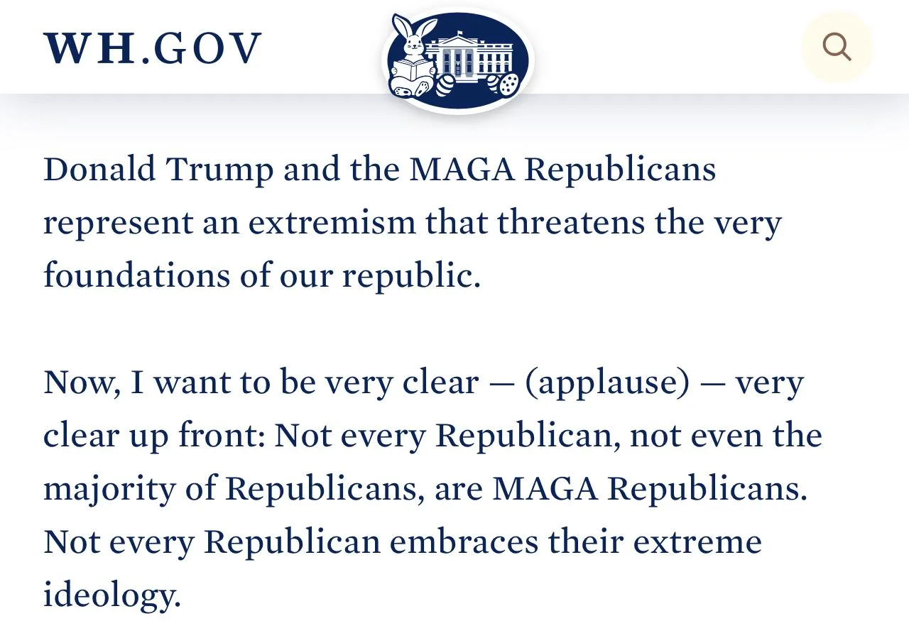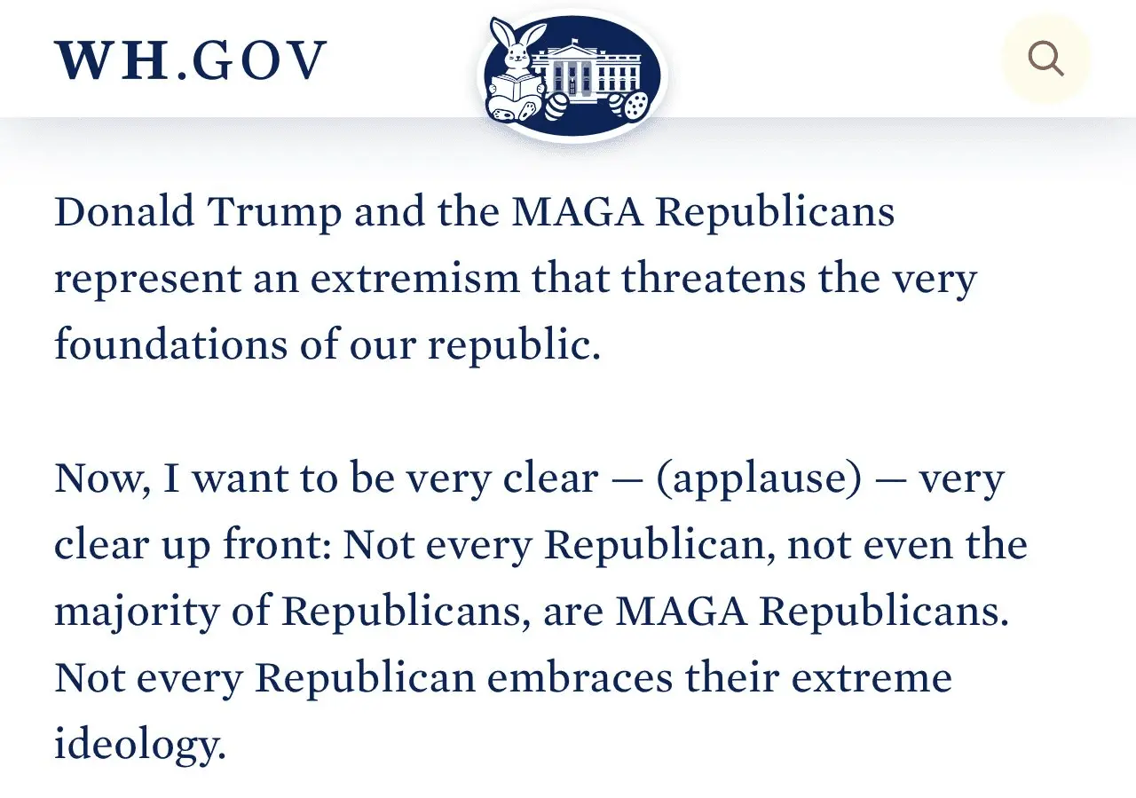 what's the extreme ideology he is referring to?Try again.. not every republican, not even a majority. Maga means maga. Not republican. In fact the maga republicans fired all the republicans from the RNC because they were not maga republicans. There is a distinction and you lying like Trumper cant change what the President said. Read the second sentence out loud.. maybe your lips need to move for you to get it.