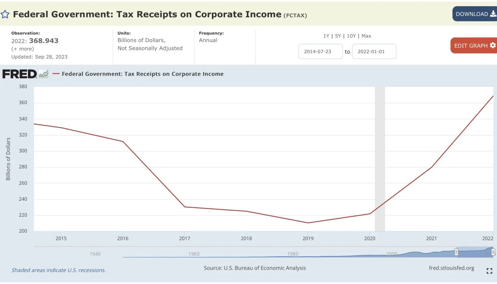 The tax revenue from corporations went down dramatically exactly when Trump cut the tax rates of corporations.