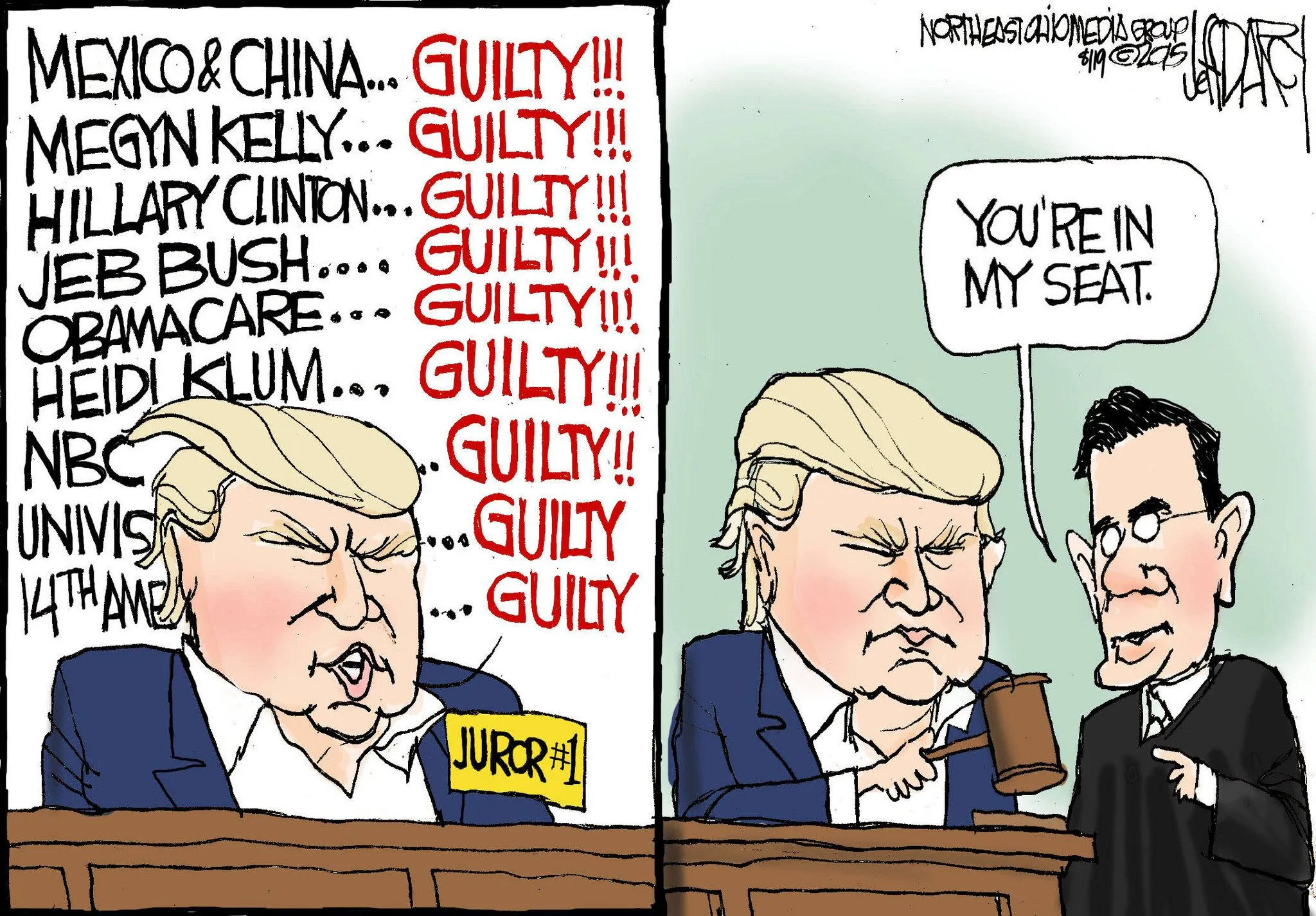 As crowds gathered around the new courthouse in Brooklyn to see the course the anticipated trial of Batman, presided over by Jervis Tetch and Sandra Woosan, CNN journalists were on hand, trying to connect this consumerism criminal-insanity case involving the sale of water-guns to inner-city youth with a recent incendiary statement made by U.S. President Donald Trump regarding the 'criminality' of financially-challenged sectors of American society.