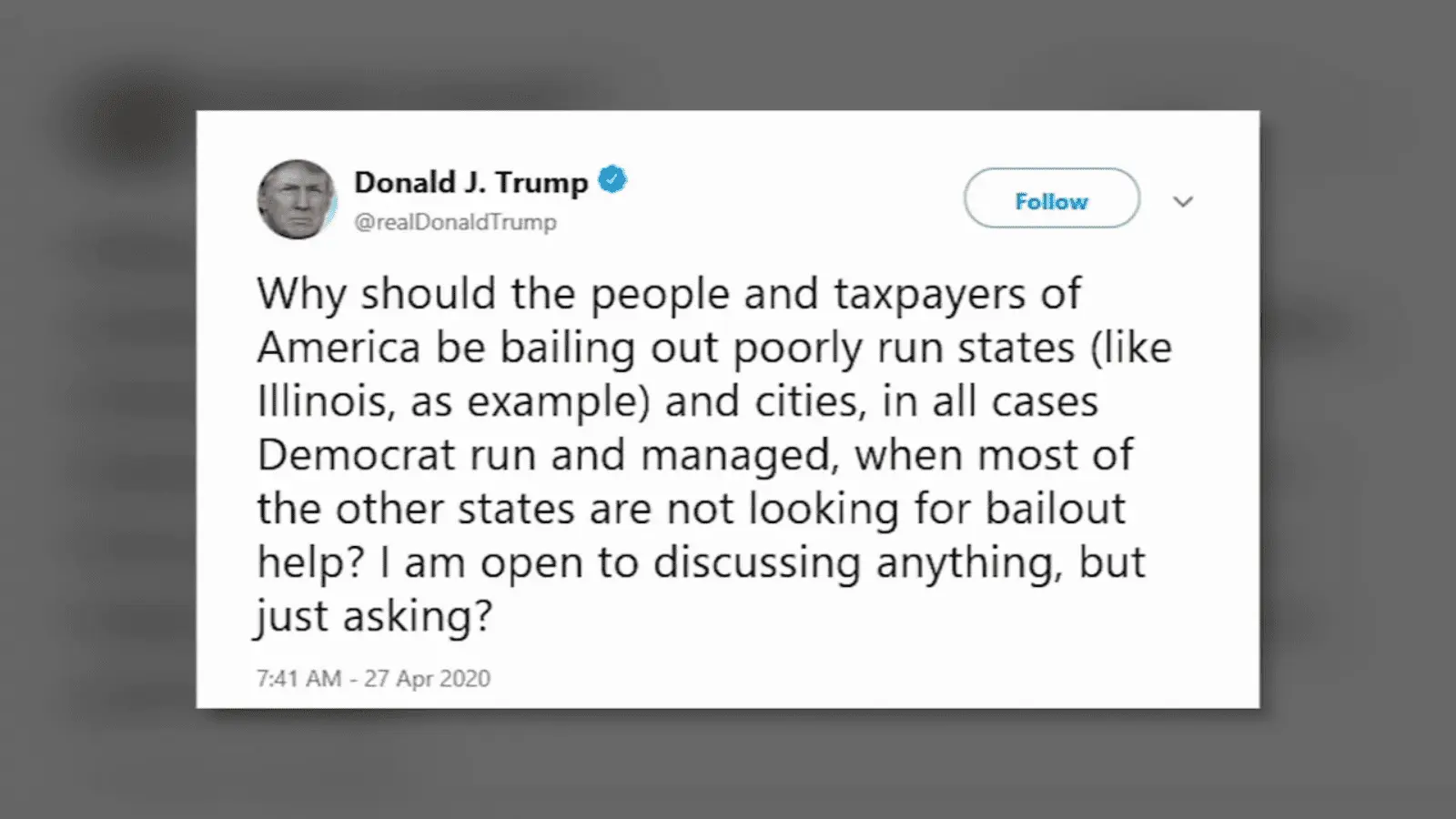 That ain’t good news for us, ’cause we’re one of the places they’re gonna scram to. But it’s not gonna take long for all these people to realize they don’t have to commute from Connecticut to Manhattan, and the businesses to realize, “We don’t need to rent all this business office space,” and then people like the tech valley people, Silicon Valley people, employees, they don’t have to pay $3,000 a month rent in San Francisco now.