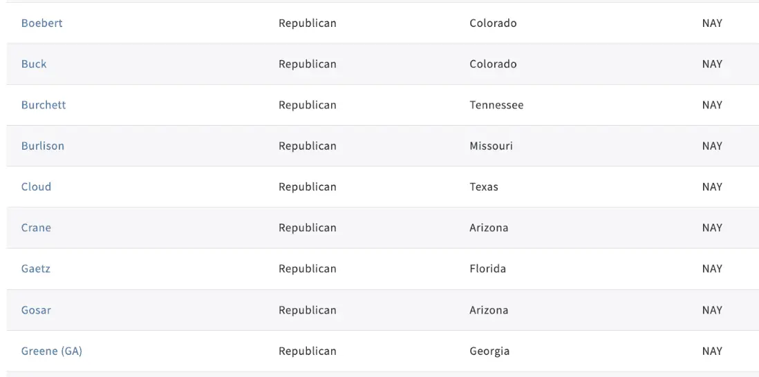 None, I just want to know WHY MTG, LB, and MG voted Nay.What leftist bullshit are you leftists trying to push through this time?
