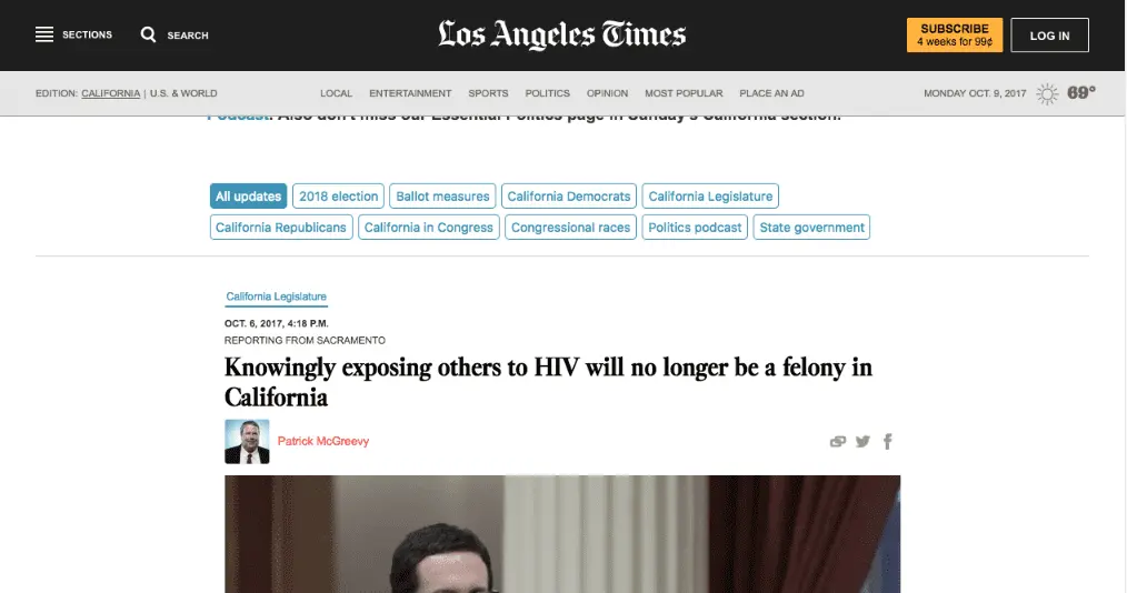Knowingly exposing others to HIV will no longer be a felony in California