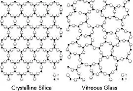 The most common type of glass, silicate glass, is made from silicon dioxide (SiO2), which is a 3D network of tetrahedra. In this network, each corner oxygen atom is shared with the adjacent tetrahedron. The tetrahedral units can also form chains and sheets, which are used to make other ceramics.