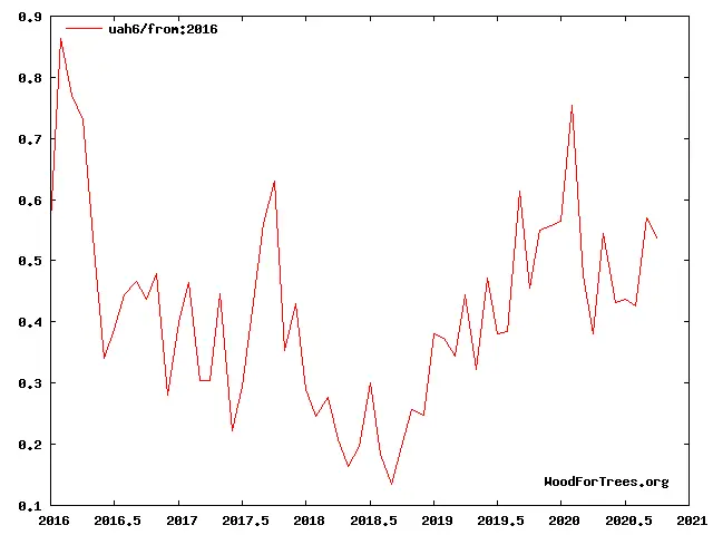 WoodForTrees Temperature Index (WTI). This is created from the mean of HADCRUT4GL, GISTEMP, RSS and UAH, offset by their