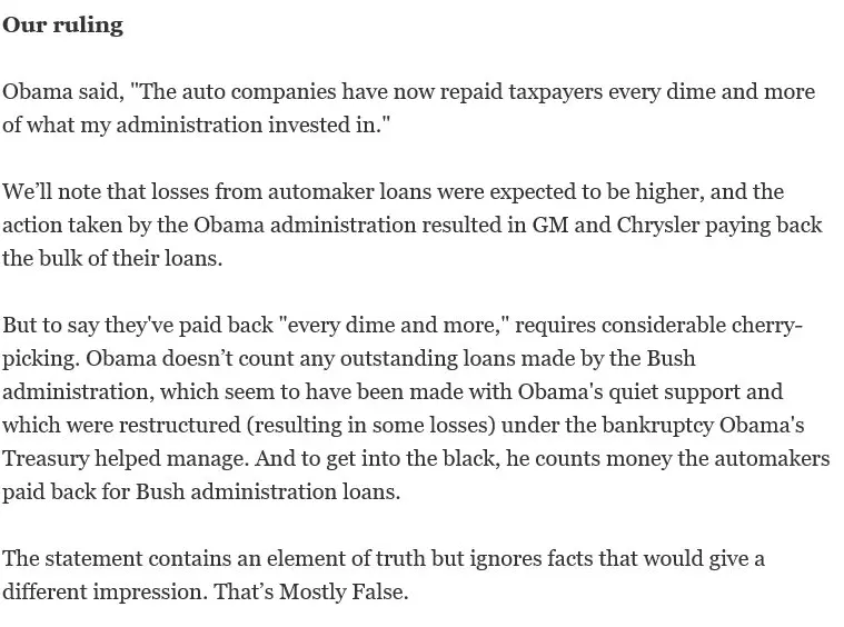I would add that the money the auto companies received wasn't free. It was a loan.