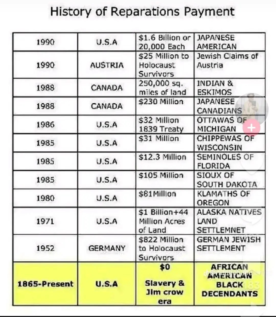 What restitution was paid to us when Jim Crow ended?