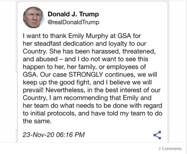 It was reckless, irresponsible idiocy on the part of Trump, his enablers, and his supporters that it took this long; it was reprehensible and wrong that Trump, his enablers, and his supporters put this country through baseless, meritless lawsuits, pointless recounts, bizarre conspiracy theories, and harmful rhetoric hostile to our most fundamental democratic institutions.