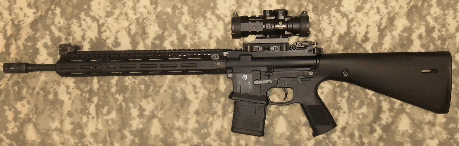 The AR build is on a KE Arms poly lower (A1 stock length) and I used a Faxon 16" fluted mid-length "pencil" barrel and a BCM hand-guard. It comes-in as pictured at 7# with a empty 20-rounder. Other than the optic it was a inexpensive build as I had everything else in my parts drawer but the lower, most of which I picked-up here and there when AR stuff was cheap. I only gave $25 for the lightly used BCM HG because it was missing the attachment hardware but another $25 for the hardware and it was GTG.