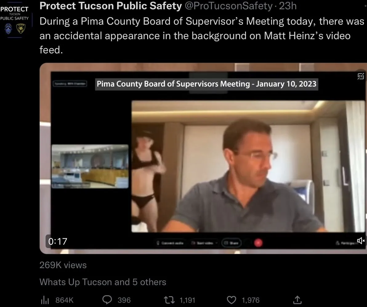 A half-naked man wearing a Speedo popped into the background of an Arizona counselor's Zoom call during a meeting of the Pima County Board of Supervisors on Tuesday.