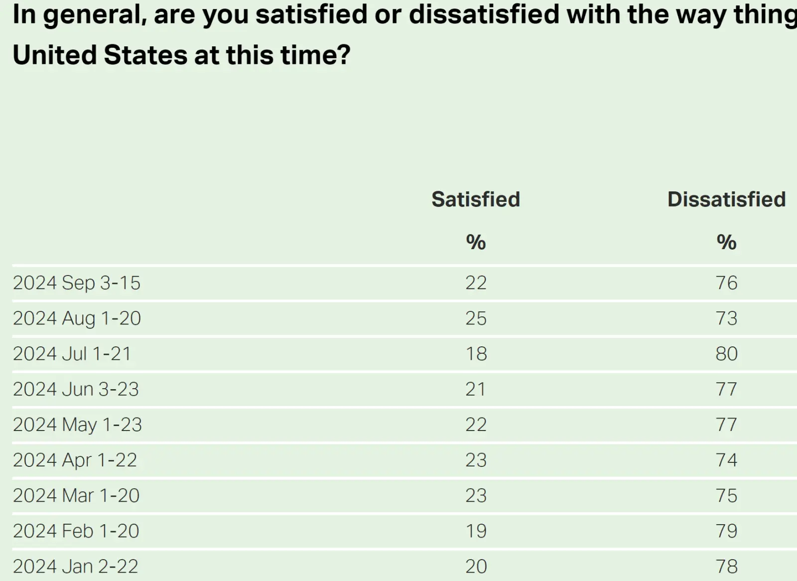 In general, are you satisfied or dissatisfied with the way things are going in the United States at this time?news.gallup.com