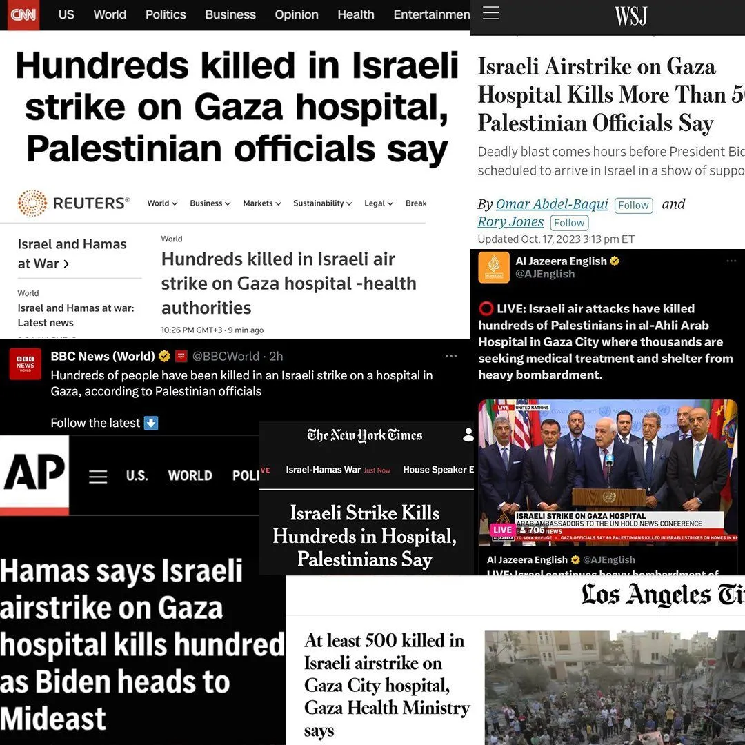 Media immediately took the word of the same people who just murdered 1,300 innocent people and kidnapped over 200 instead of doing some fact checking first. And of course worldwide outcry and demands for justice blah blah blah.