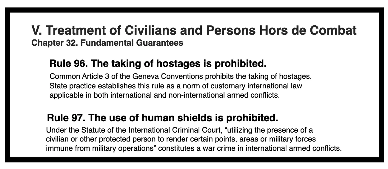 ◈ International Criminal Court (ICC) Article 8(2)(c)(iii) War crime of taking hostages