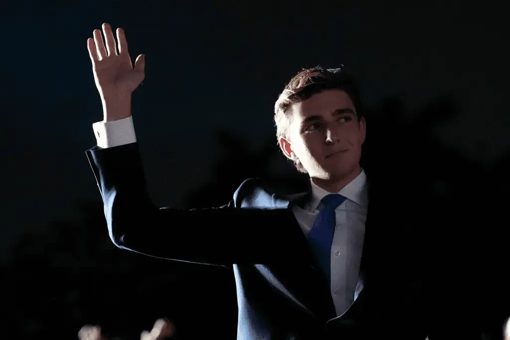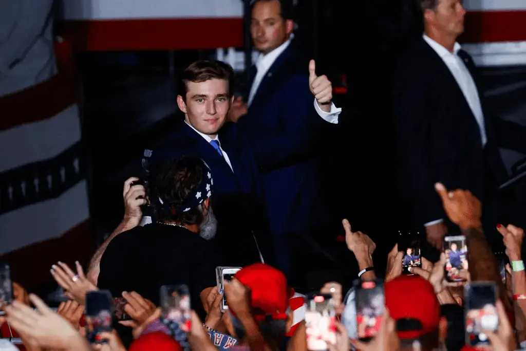 Barron, 18, turned and waved to the crowd of Trump supporters at his fatherās Doral golf course as the former president praised him for his smarts, demeanor and rising popularity.