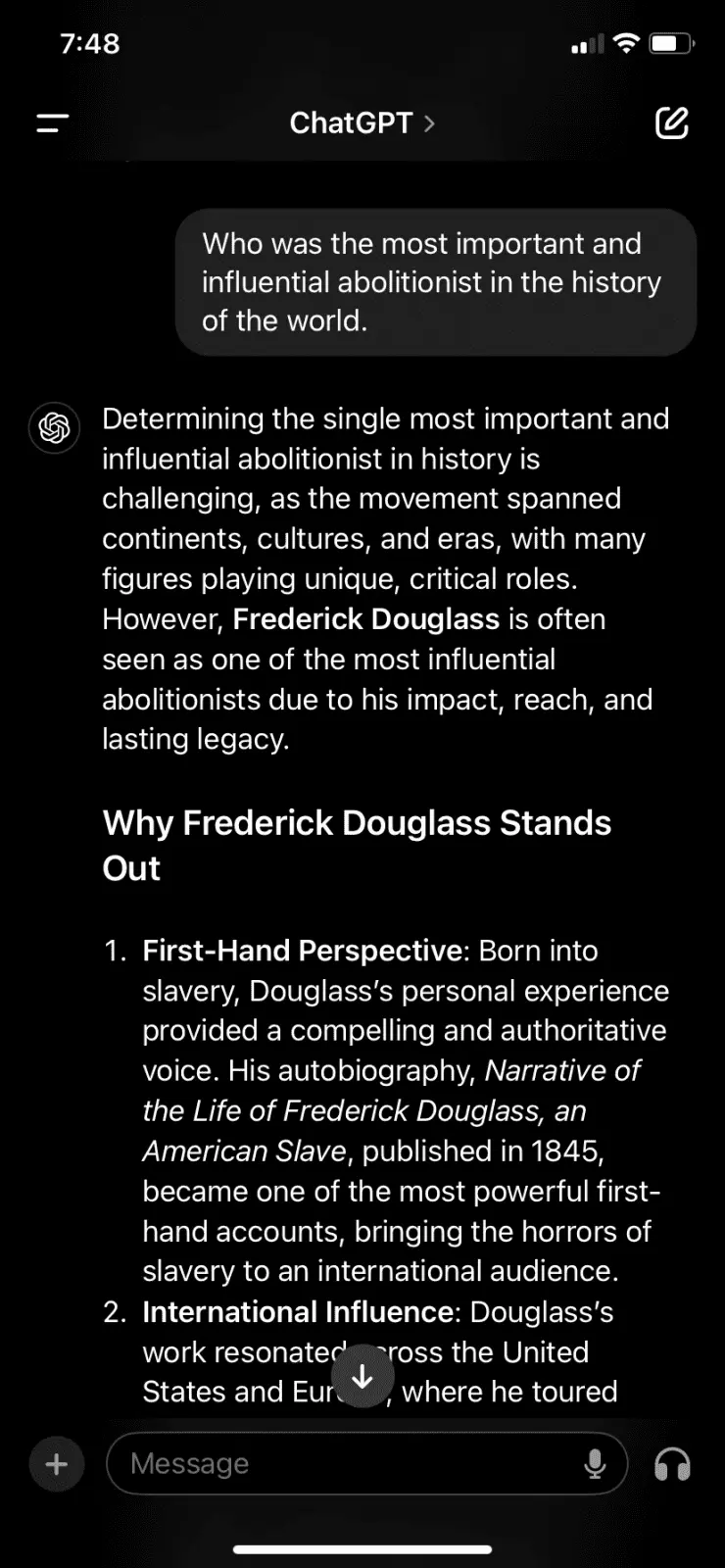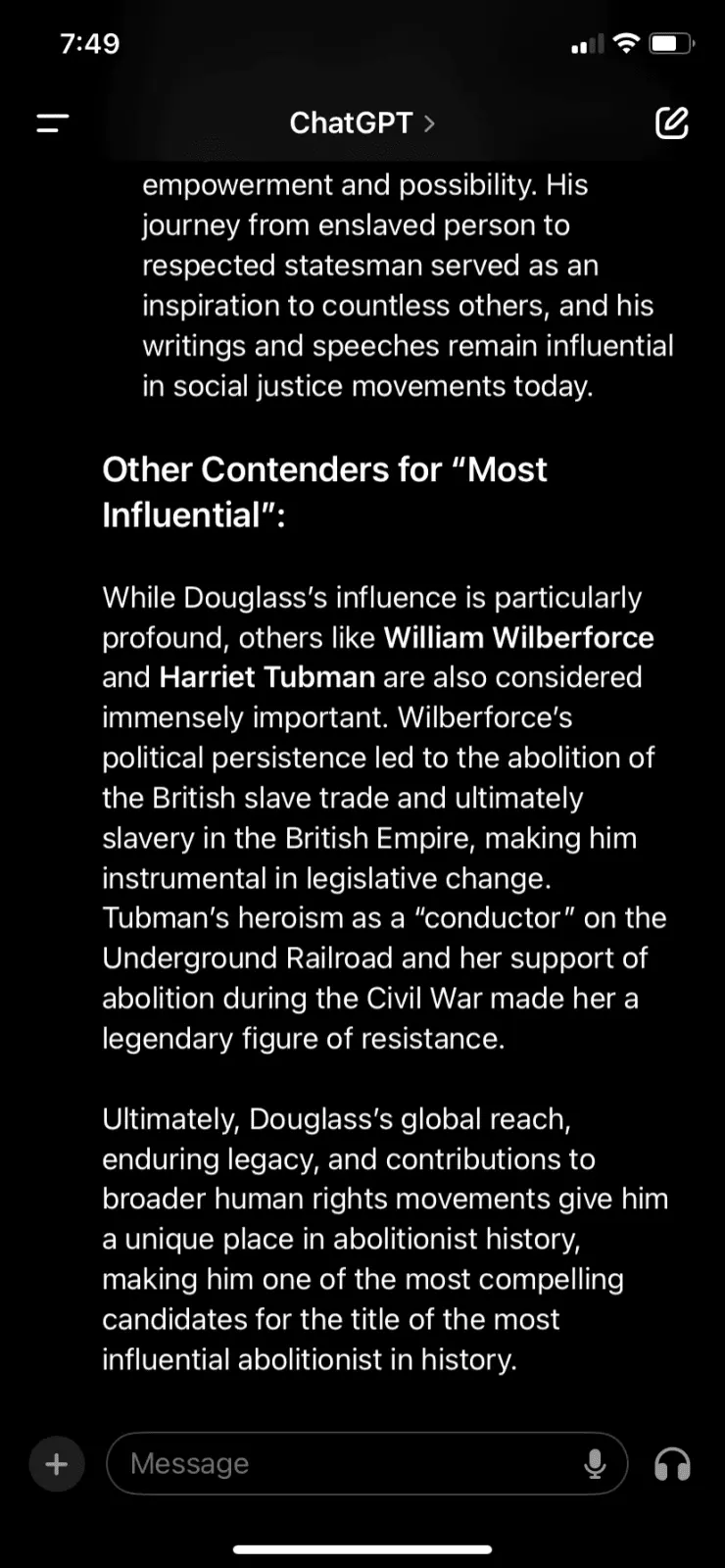 The US also produced several prominent abolitionists, like Frederick Douglass, Harriet Tubman, and William Lloyd Garrison and Sojourner Truth.