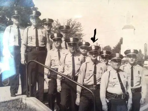oh your dad was a police officer (or fire fighter), so you better straighten up and walk right be a law and abiding citizenMy dad (under arrow)....Around 1960.