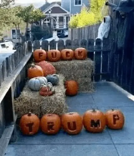 Interesting how this family carved out their meal in those letters since they can't afford anythong else to eat. And Biden was too few letters although Poopeypants would require more punkins which they could not afford.