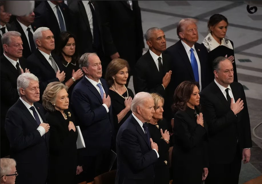 Former and sitting presidents, vice presidents and their spouses attend former president Jimmy Carter's funeral n Washington on Jan. 9. (Demetrius Freeman/The Washington Post)