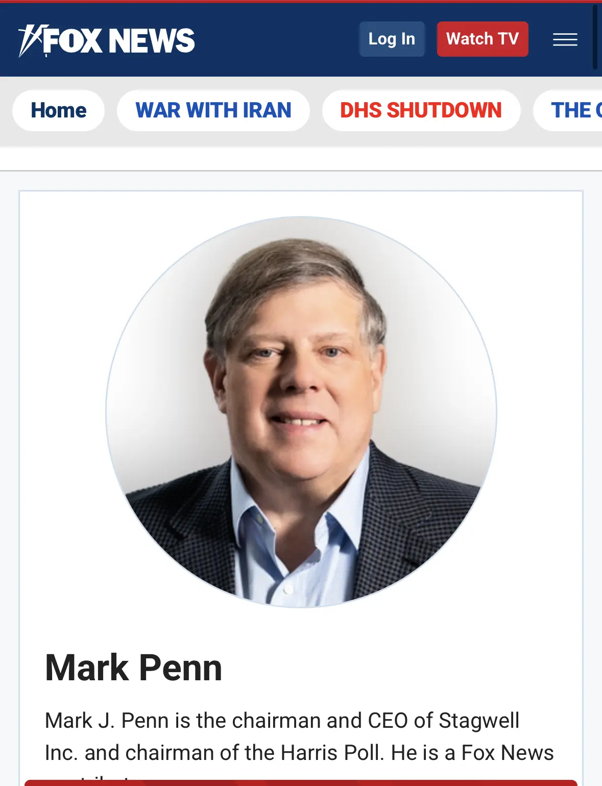You watch a lot of fox do ya con.man?And the polls are from a Fox contributor (Mark Penn, chief of Harvard/Harris) fired by Hillary and out for revenge: