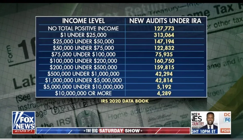 I got audited this year. Retired middle class. I only knew because my refund took 4 months to arrive and the refund amount went up $5.FOX, who can’t type, graphic. CBS: