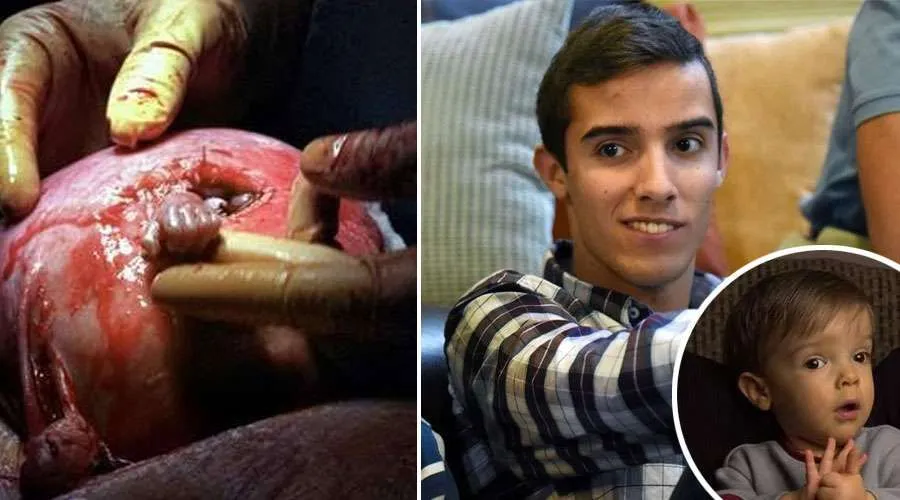 At 21 weeks after conception Sam had surgery for spina bifida while inside his mother. During the surgery he reached out and grabbed the doctors finger. Sam is 22 years old now.