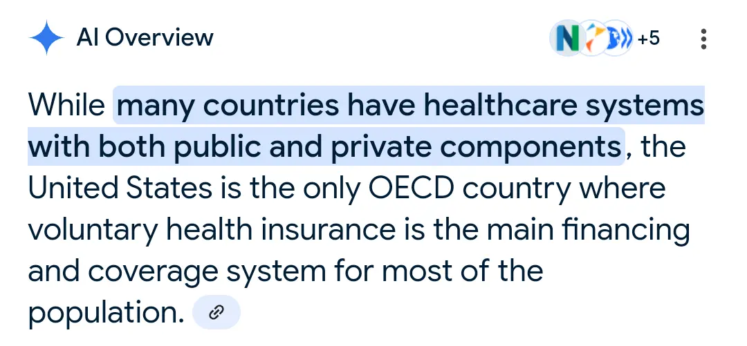The only country in the world with the bulk of private healthcare is the US. A search, AI says -