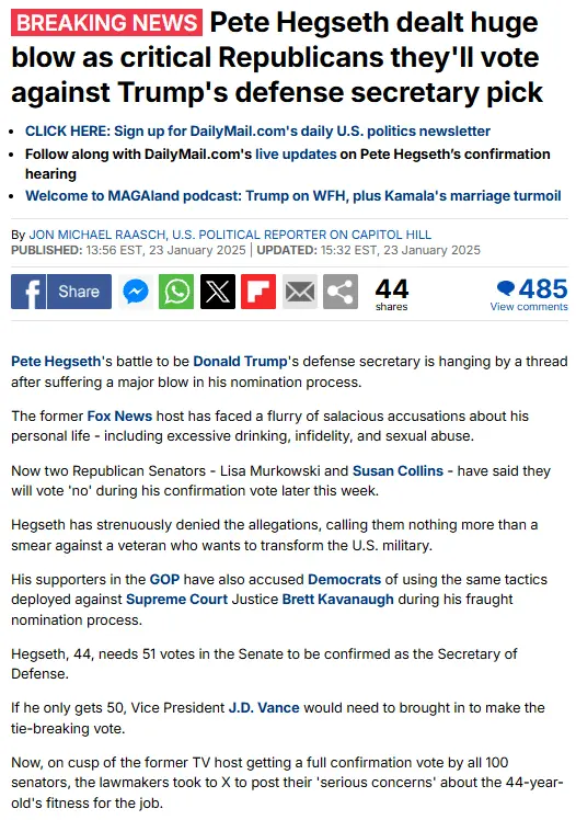 Hegseth like Gaets is a schmoozer and that's all that matters here, I've seen it all before and to see it at this level of government proves that the US is tuning into a political garbage dump.