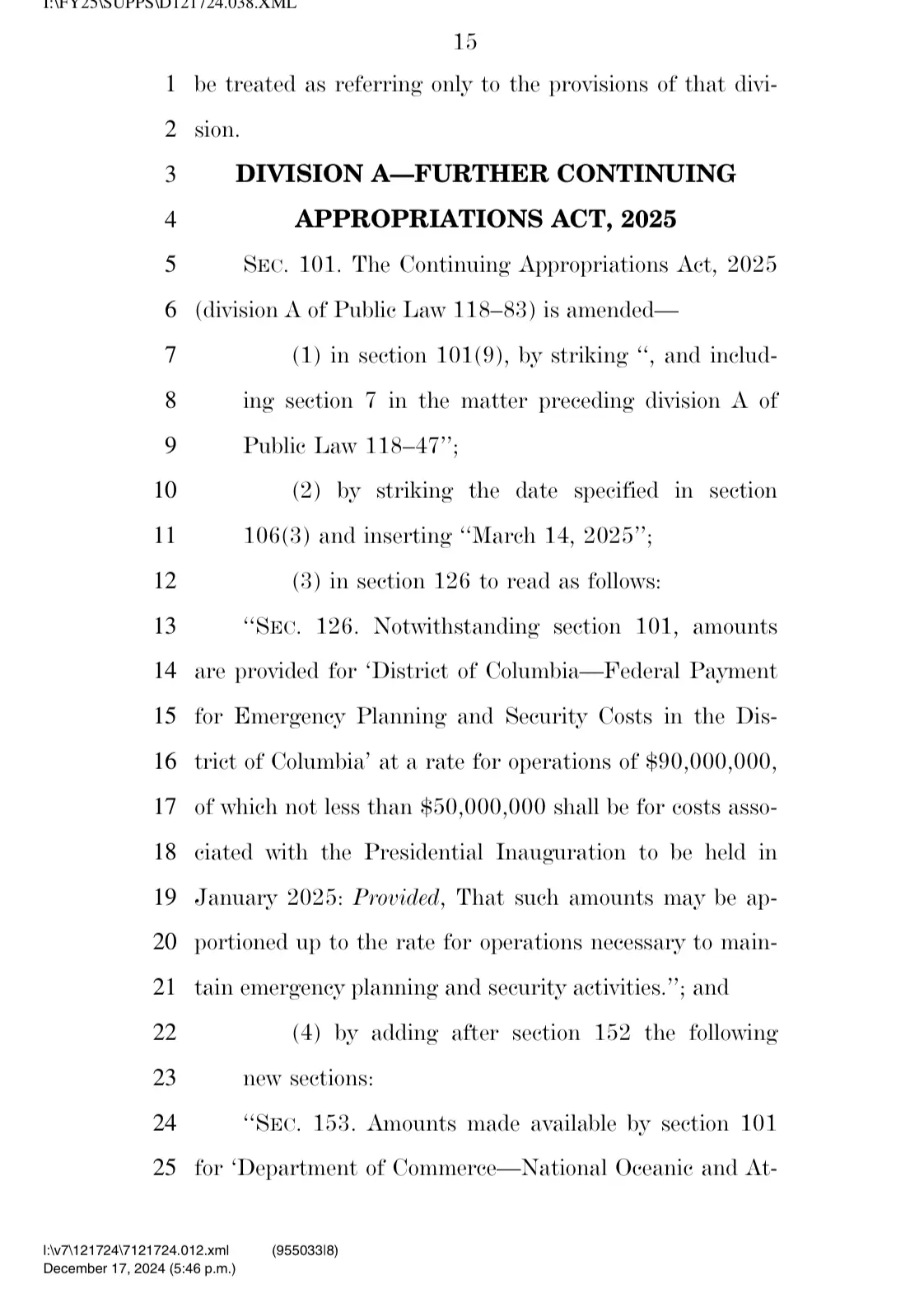 19 January 2025: Provided, That such amounts may be ap- 20 portioned up to the rate for operations necessary to main-