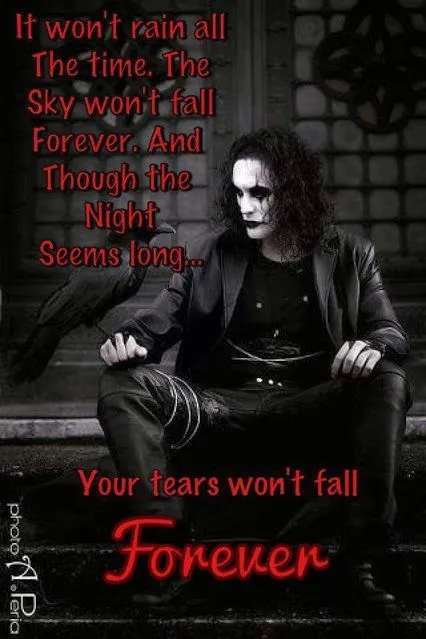 The Crow was a very sensitive but mystical 'anti-hero' who tackled some of the worst elements imaginable in modern corrupted/corruptible cities. The Crow was a man who was killed by henchmen and came back from the dead, guided by the spirit/eyes of a real-life crow who became his only friend, and vowing vengeance for the sake of justice. The Crow was an American folkloric symbol of the social fascination with justice/vigilantism daydreams and was penned by the creative American writer/illustrator James O'Barr after the artist's comics gained recognition when avant-garde film-maker Alex Proyas adapted the comics into the cult-favorite film The Crow starring Brandon Lee (son of martial-arts film-legend/celebrity Bruce Lee).