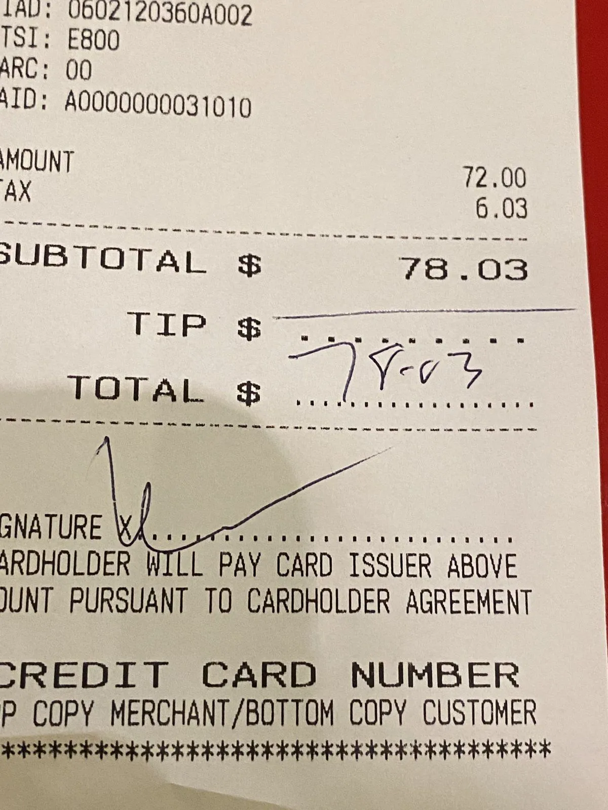 Thats a 1st, dude. Signing on the cardholder line when you pay with cash.Ha