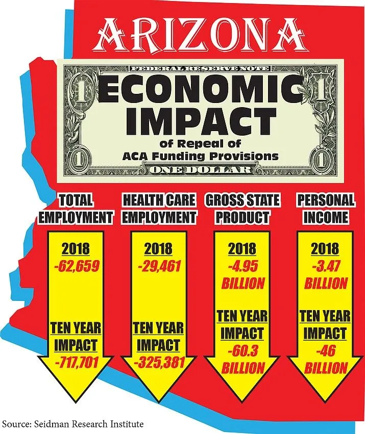 A report from Arizona State University warns of a “health care recession” with the loss of more than 62,000 jobs in 2018 and more than 700,000 jobs over the next 10 years should the Affordable Care Act be repealed.