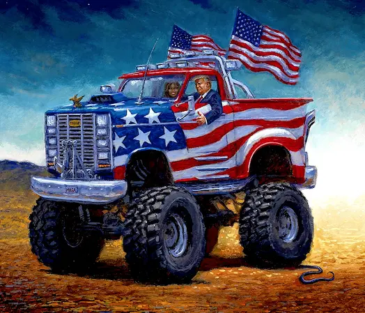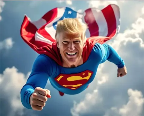 I've saved all of the best artwork. In them, Trump is depicted as a biker, a boatist, an undertaker, a priest, a commander, a super hero, and many other things but I never thought Trump was really conveying himself as any of those things especially as he had nothing to do with creating any of the art.