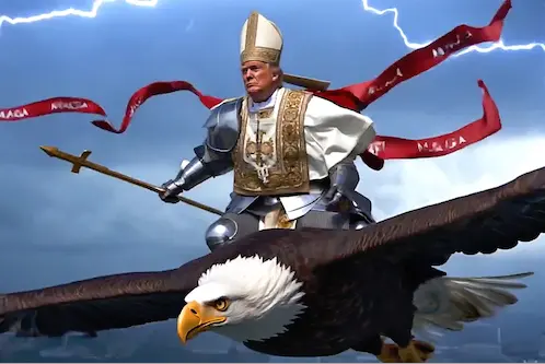- The art could have been created by a well-meaning MAGA supporter, or maybe by a clever leftist with the exact intent to offend and turn a lot of Catholics, etc., against him. Seems that ploy worked with you.