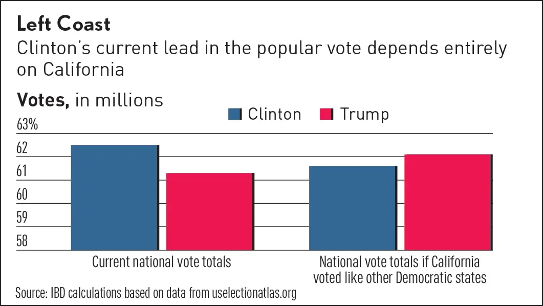 ---- and all states ---- send their vote proportionally to the will of the People. That gives, in this case at present count, 34 California EVs for Clinton and 19 for Rump.