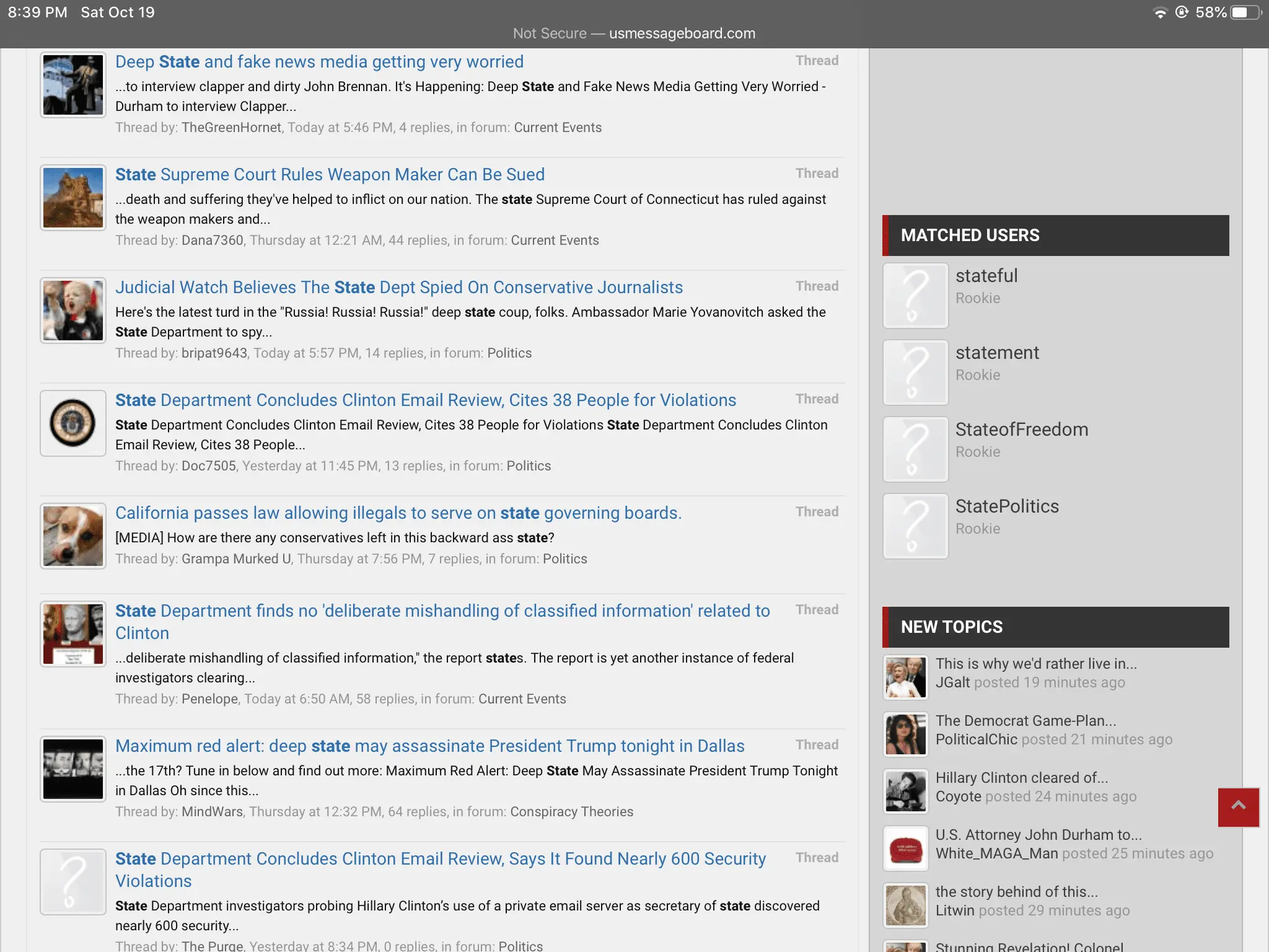 Aha! Has Bleachbit and Blackberry smashers reached into the bowels of USMB? Missing threads? Tell me it ain't so.