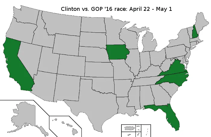 From 22 April 2015 to 01 May, 2015, there was national polling, Hillary Clinton (D) vs. GOP field. There was also polling for the same in these states: