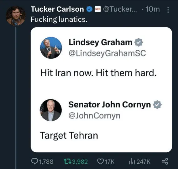 Two deranged criminal gangs control this country...It was just a matter of time. Lindsey is in orgasmic ecstasy right now wanting to push the Usurper into attacking Iran. The only reality is none of our enemies are afraid of Biden.