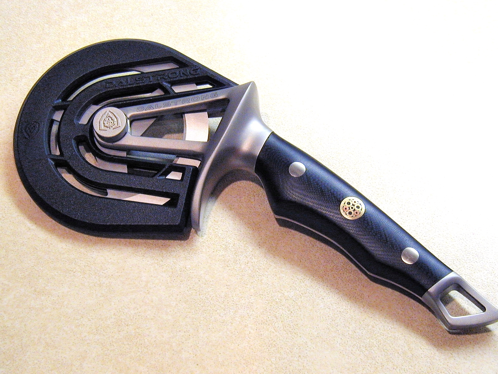 Sweet. Almost hate to get it mucked up with sauce. lolI bought a pizza cutter about a year ago (actually sold as a rotary knife, it is far too well made just to cut pizza), and it has a G10 handle pinned, with a center mosaic of black epoxy between a pattern of both brass and copper tubes. Thing actually totally disassembles for total cleaning.