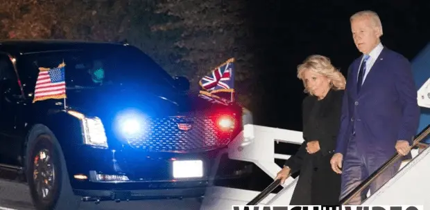 Biden FLIES to London in a fuel guzzling airplane, taking a GAS GUZZLING Cadillac beast with him to be driven around London for a funeral that only lasts a few minutes.