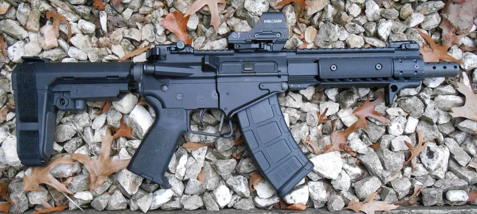 I stuck a set of MagPul Pro steel irons on it, along with a Holosun reflex sight I had, loaded-up some mags and took it down to my range to get sighted in, I had already bore sighted it.....It is a very smooth operating weapon but loud due to the very effective muzzle break.