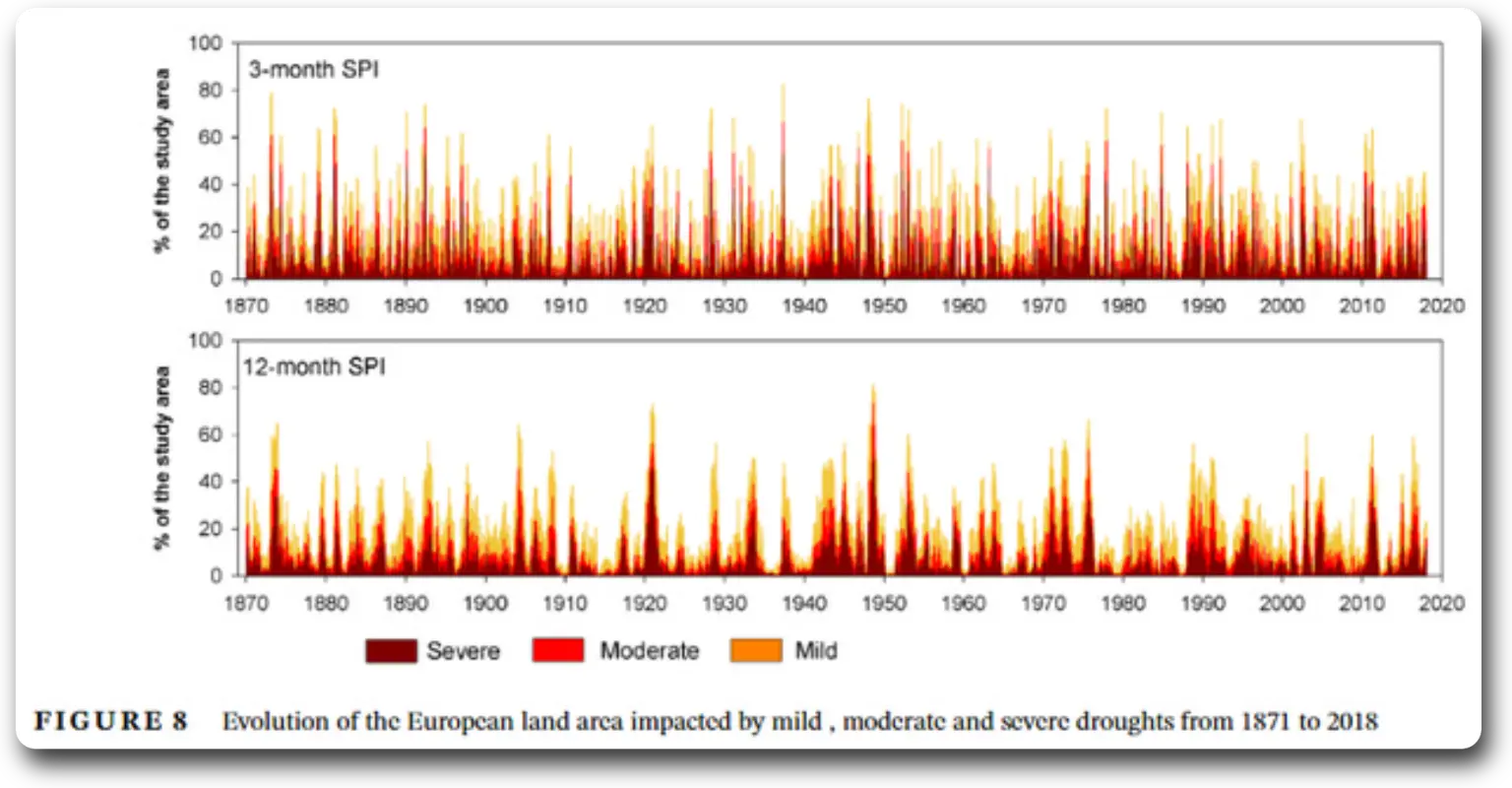 And the same is true in Europe. No increase or decrease in droughts in 150 years.