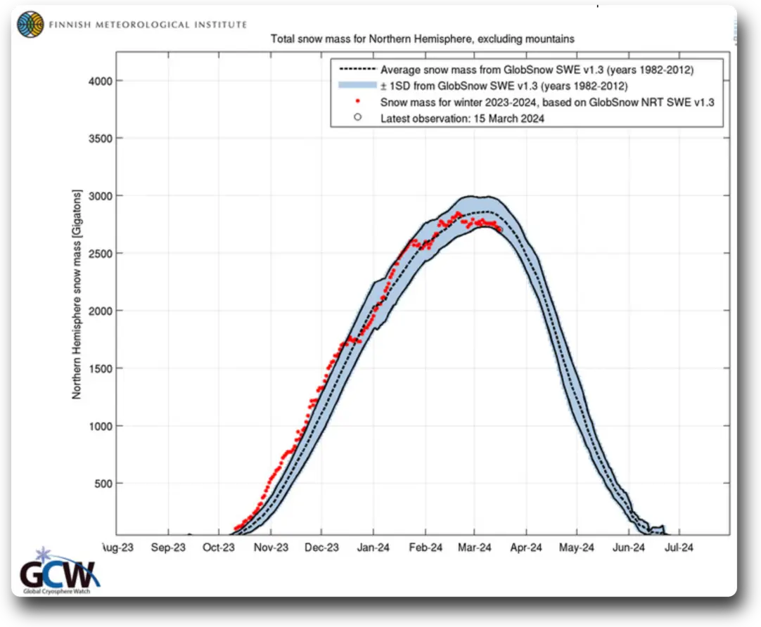 And here is the Rutgers Snow Labatory’s snow extent data from 1972 to April 2023 … basically, no change.
