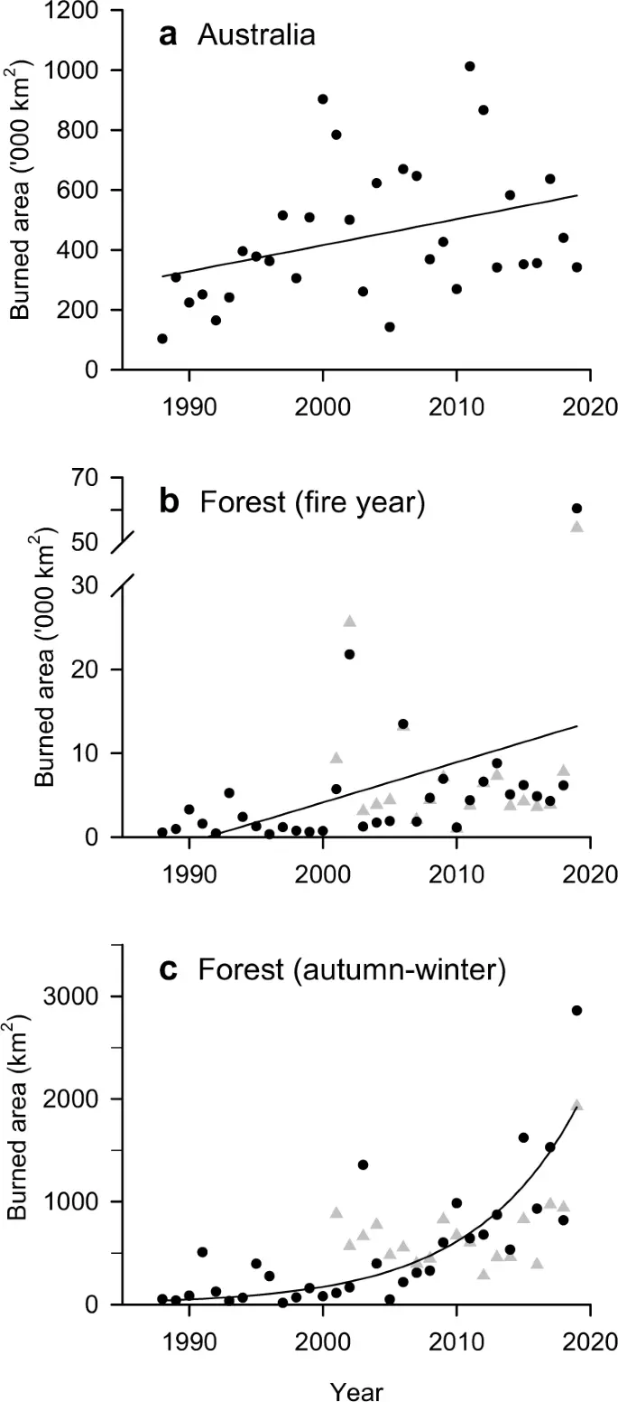Multi-decadal increase of forest burned area in Australia is linked to climate change - Nature Communications