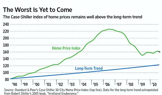 Earlier this year market observers breathed easier when national prices stabilized. But the "robo-signing"-induced slowdown in the foreclosure market, the recent upward spike in home mortgage rates, and third quarter 2010 declines in the Standard & Poor's CaseShiller home-price indexincluding very bad October numbers reported this weekhave sparked concerns that a "double dip" in home prices is probable. A longer-term view of home price trends should sharply magnify this fear.