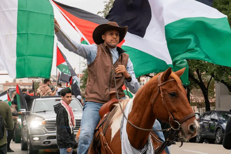 Pro-Palestinian demonstrators in Austin, Texas, rode horses, let of smoke flares and waved flags as they called for a ceasefire in the ongoing conflict between Israel and Hamas, footage from the protest shows.