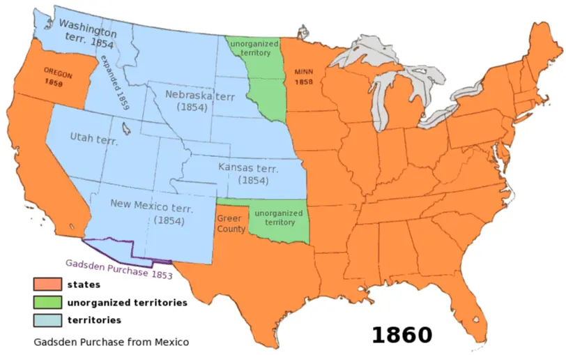 1) Abraham Lincoln was elected President of the United States in 1860, the nation then comprised of all the states identified below: