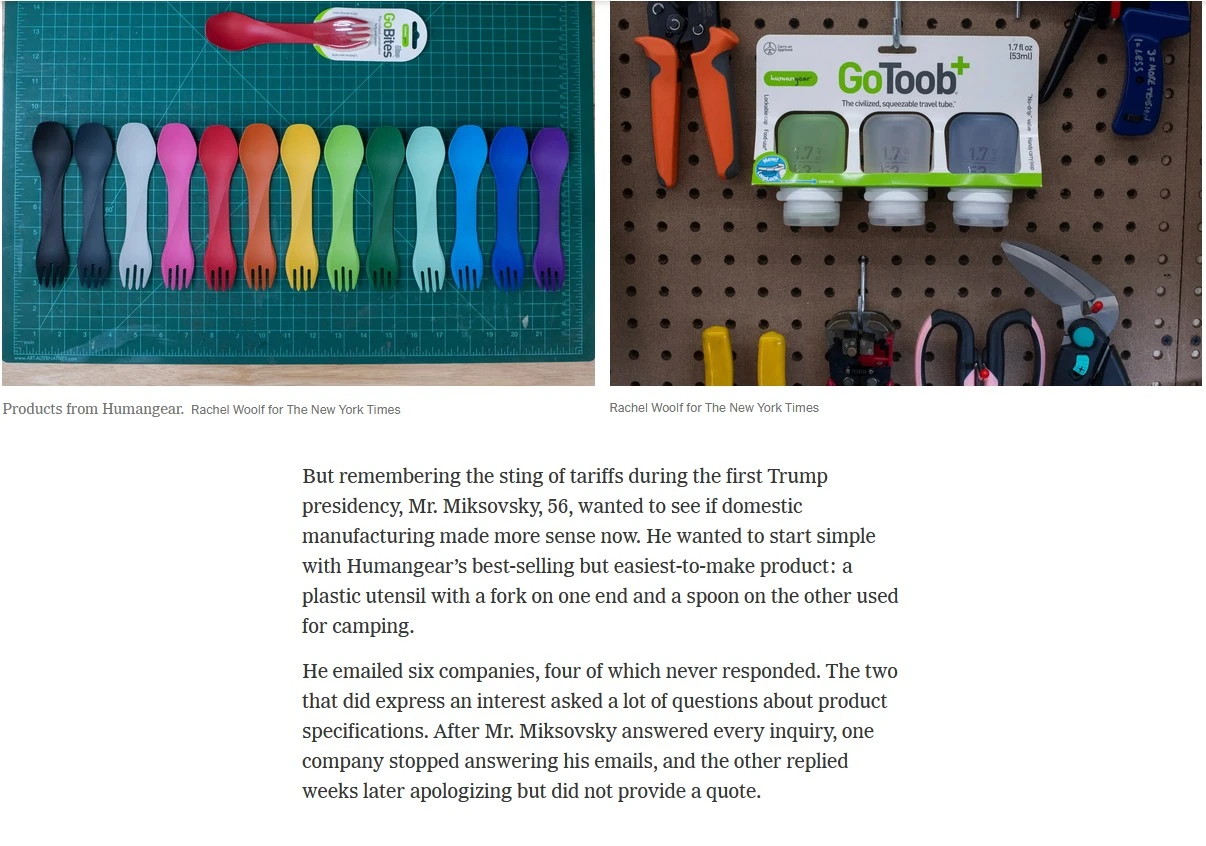 My Headline: Trump Tariffs Expose Reality of Higher Costs, Poor Quality of "Made in America" - Small Businesses know that equals products being more expensive with inferior quality.