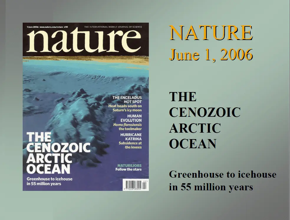 The world we live in today is an icehouse world. It is characterized by bipolar glaciation. We think of this as normal, but it's not. For most of the past 55 million years our planet was a greenhouse world. Bipolar glaciation is geologically rare, possibly unique. No other previous instance of bipolar glaciation has been recorded in the geologic record. The icehouse world we live in today is characterized by glacial - interglacial cycles and a high latitudinal thermal gradient.The modern icehouse world we live in today differed strongly from the greenhouse world in that the greenhouse world did not have bipolar glaciation and had a low latitude thermal gradient. The start of the transition from the greenhouse world to an icehouse world began 55 million years ago when the Azolla event drew down atmospheric CO2 from 3500 ppm to 1000 ppm, but it wasn't until the last 5 million years that we actually transitioned to an icehouse world. The oxygen isotope curve is well established for the Cenozoic and shows that the trend is for a cooling earth. This curve shows the cooling trend over the last 55 million years. Note the glaciation markers on the graph. About 5 million years ago the earth started to rapidly cool as evidenced by the saw tooth behavior of the oxygen isotope curve which is a proxy for temperature.