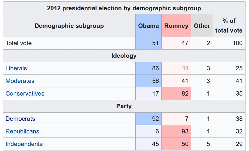 Here are the demographics for the 2012 presidential election.
