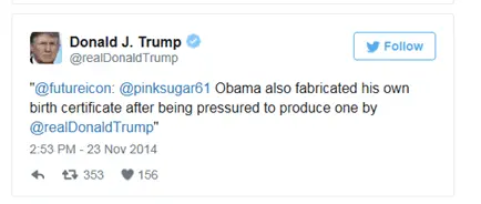2011-2016- Donald Trump Birther in Chief- lying about the President of the United States.